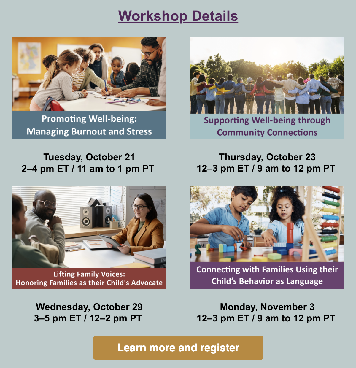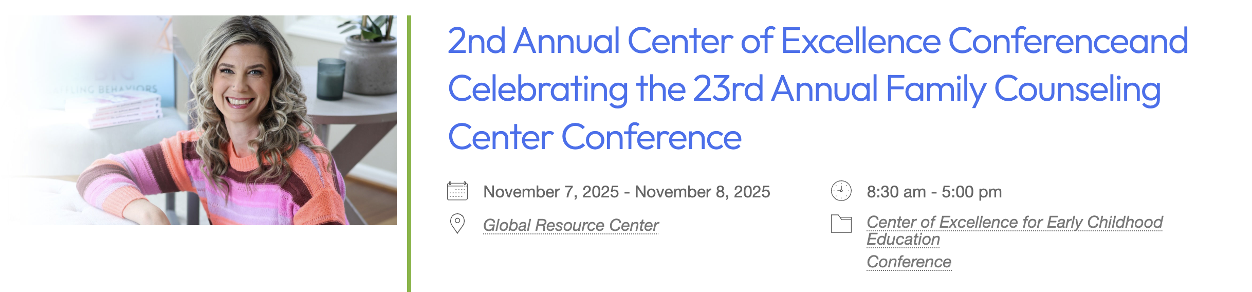 Who Should Attend: Early childhood professionals, educators, home visitors, therapists, social workers, families and community providers.