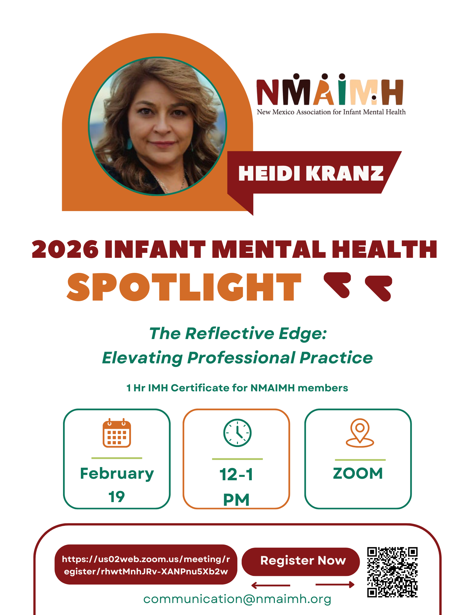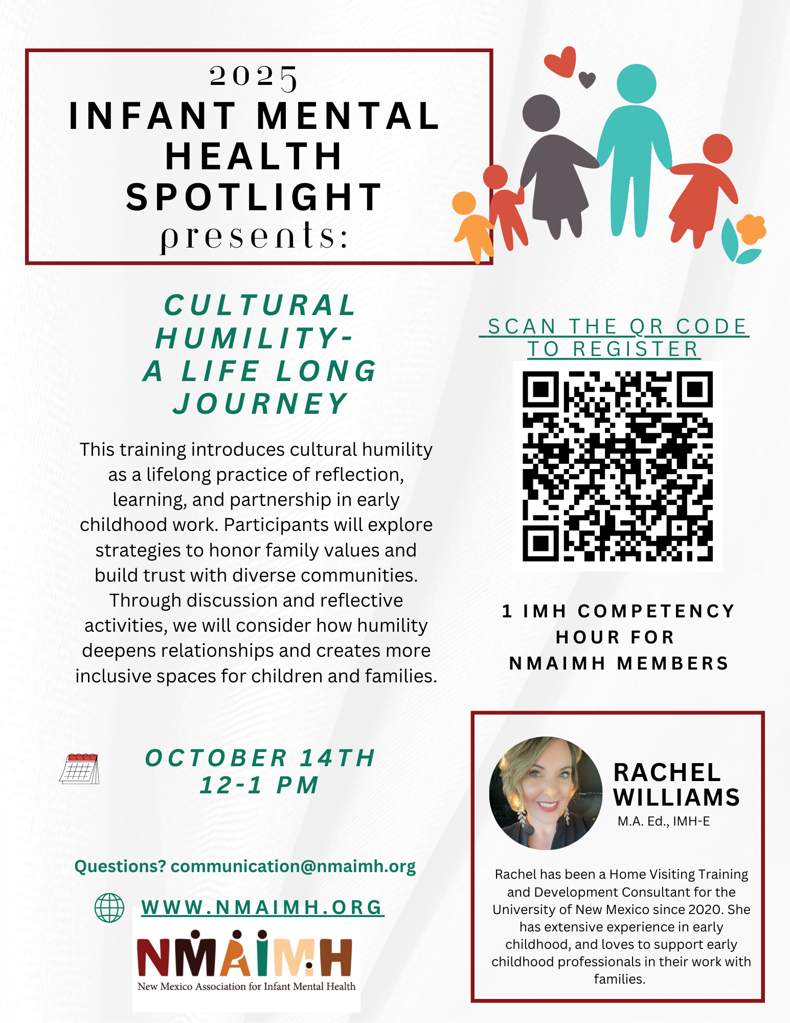 Every month features a new topic, earn CEU credits for NMAIMH members and expand your expertise.